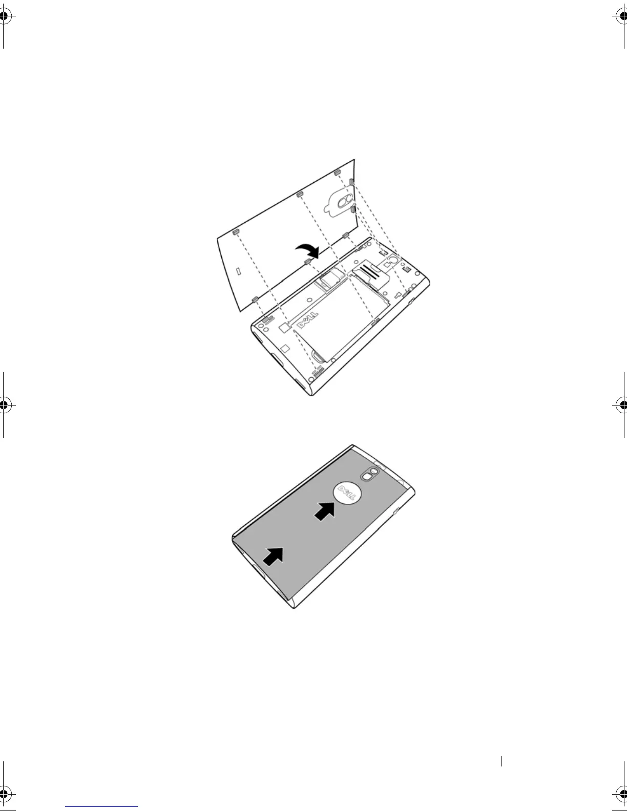 a Align the tabs on the back cover with the slots on back of the