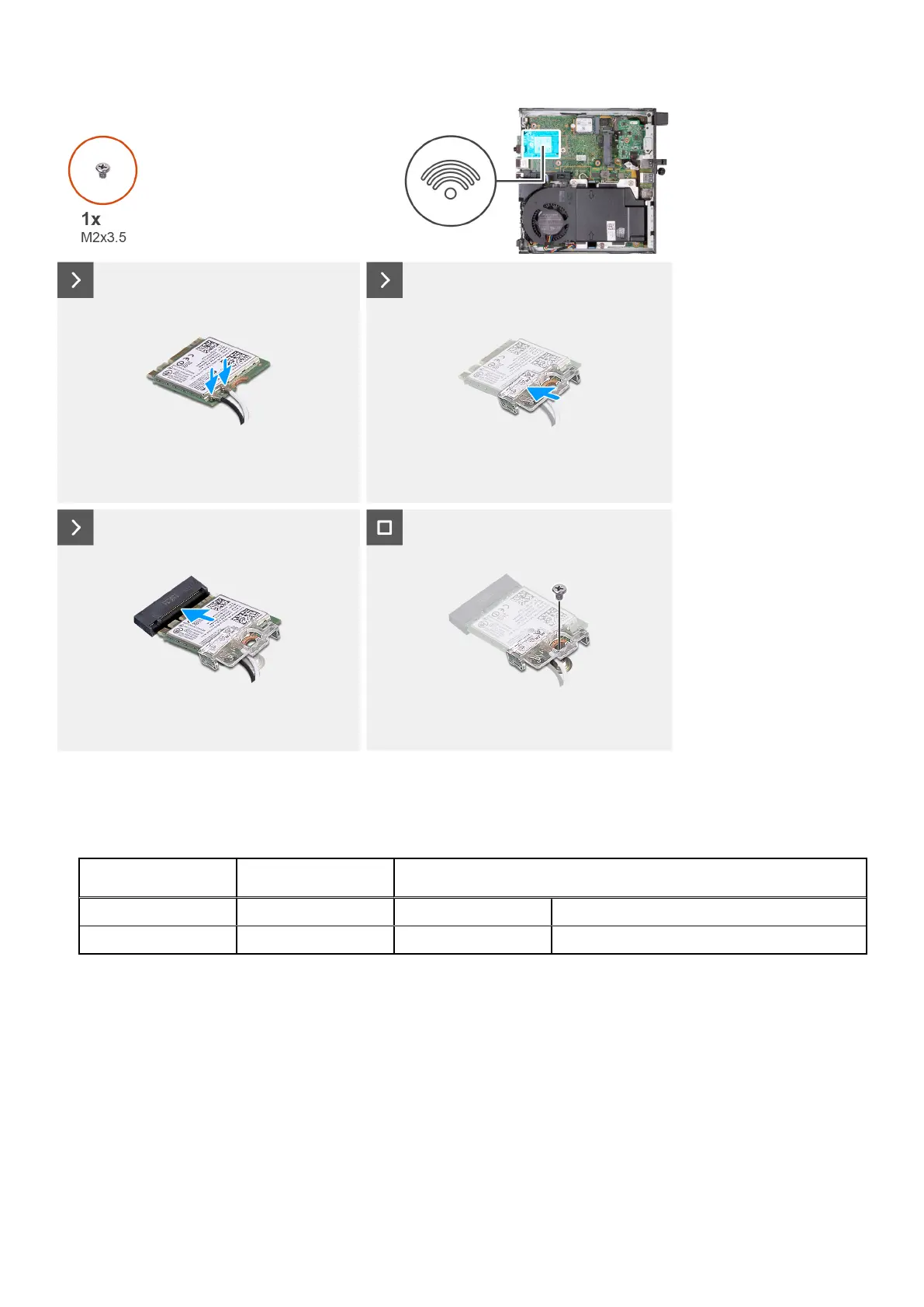 5. Replace the screw (M2x3.5) that secures the wireless-card bracket to the wireless card.