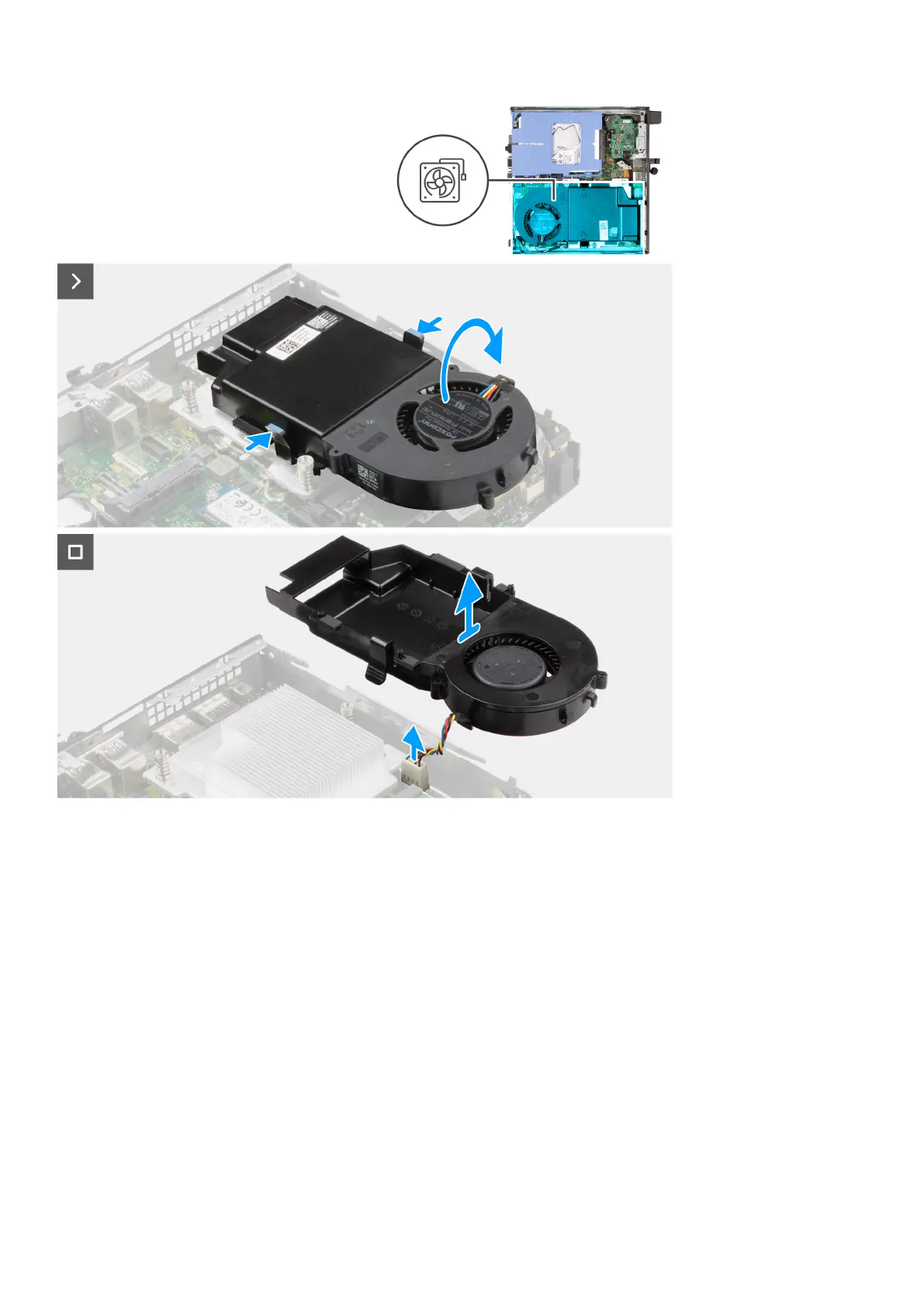 1. Press and hold the tabs that secures the fan assembly to the system board.