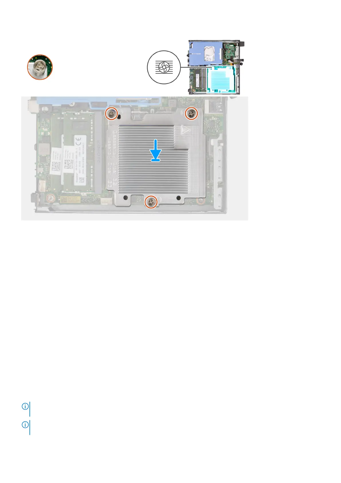 3. In sequential order (1>2>3) tighten the three captive screws that secure the heat sink to the system board.