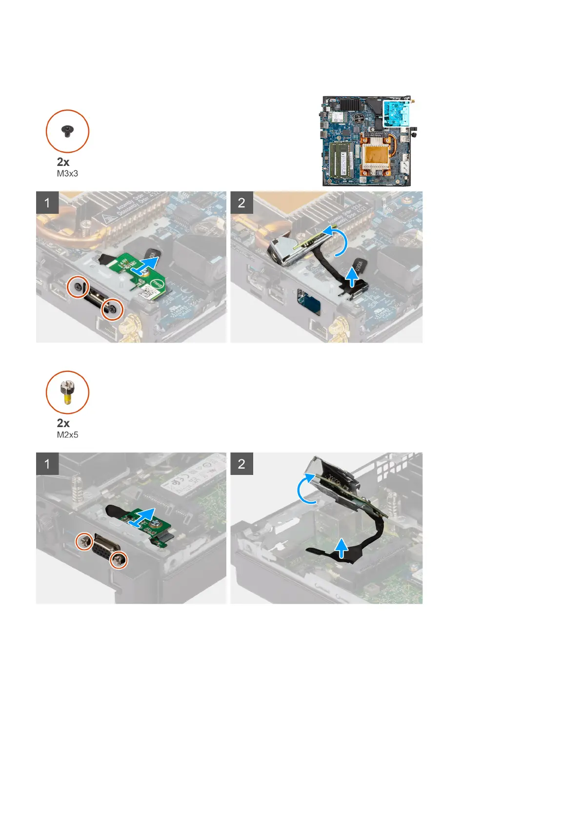 1. Remove the two (M3x3) screws that secure the optional I/O module (HDMI/DP/PS2) or two (M2x5) cross type screws