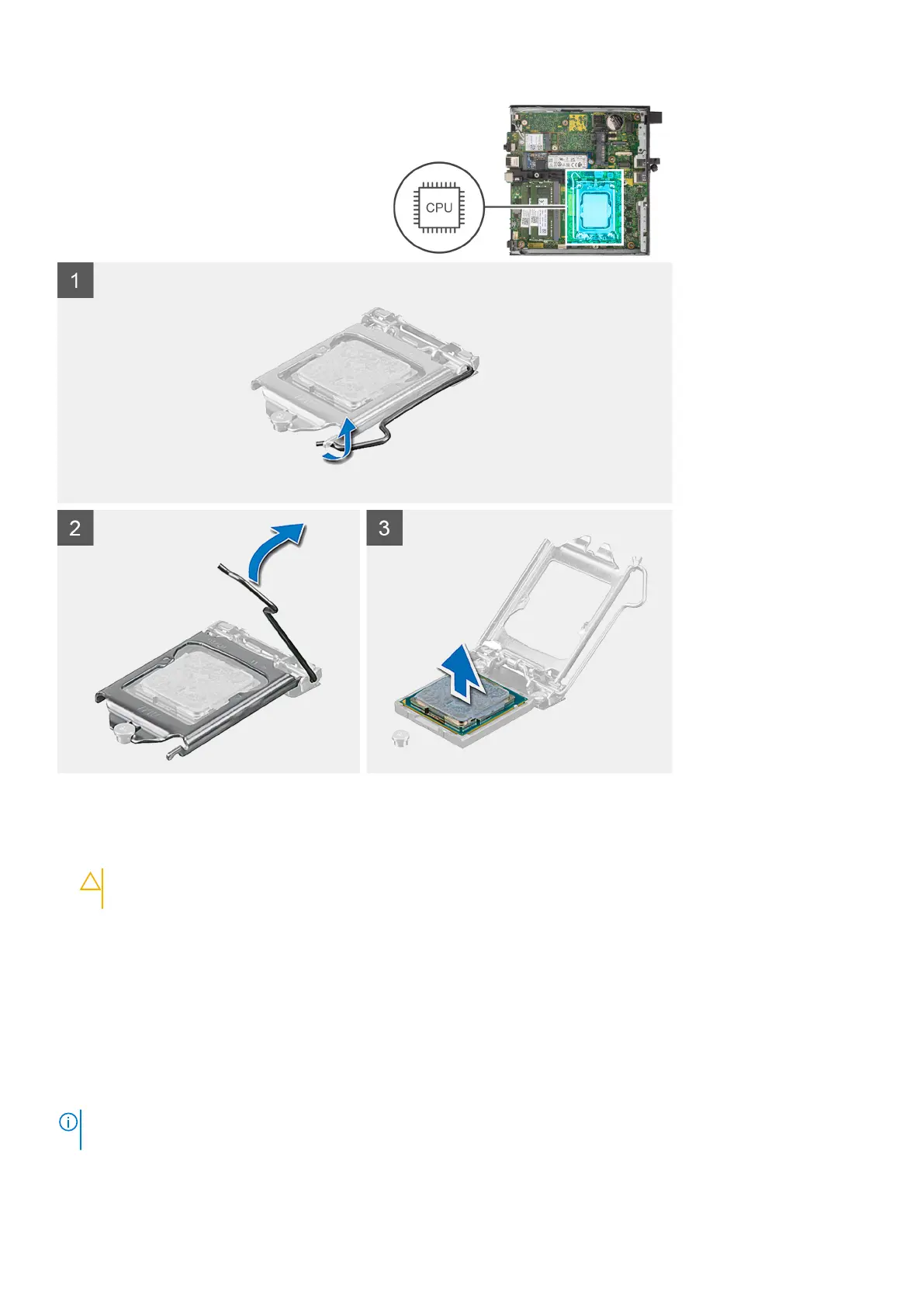 1. Press the release lever down and then push it away from the processor to release it from the securing tab.