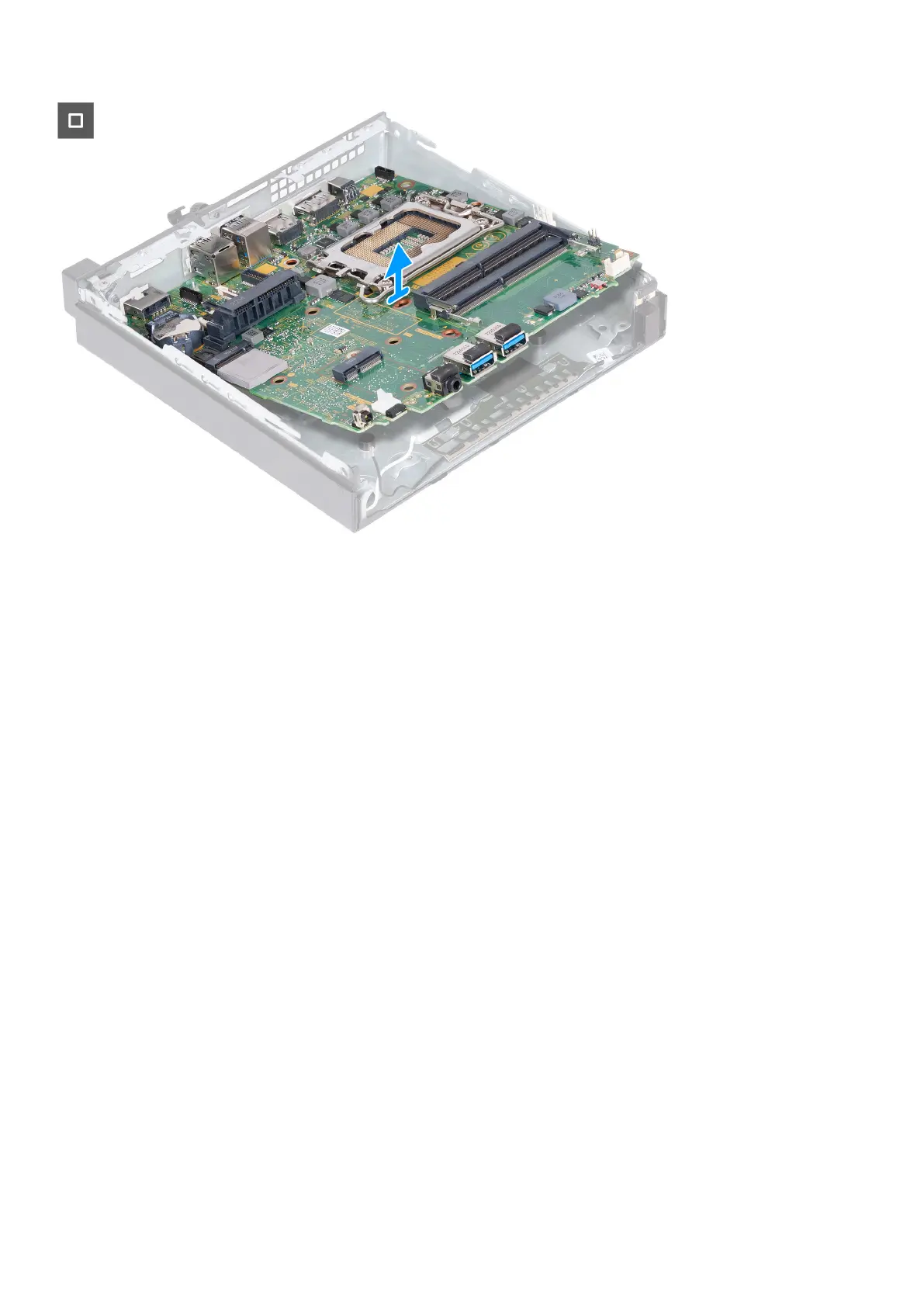 5. Lift the system board at an angle and remove it from the chassis.