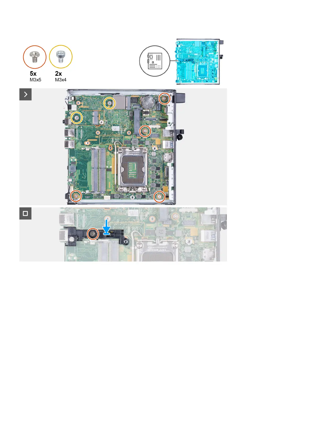 5. Replace the two screws (M3x4) that secures the system board to the chassis.