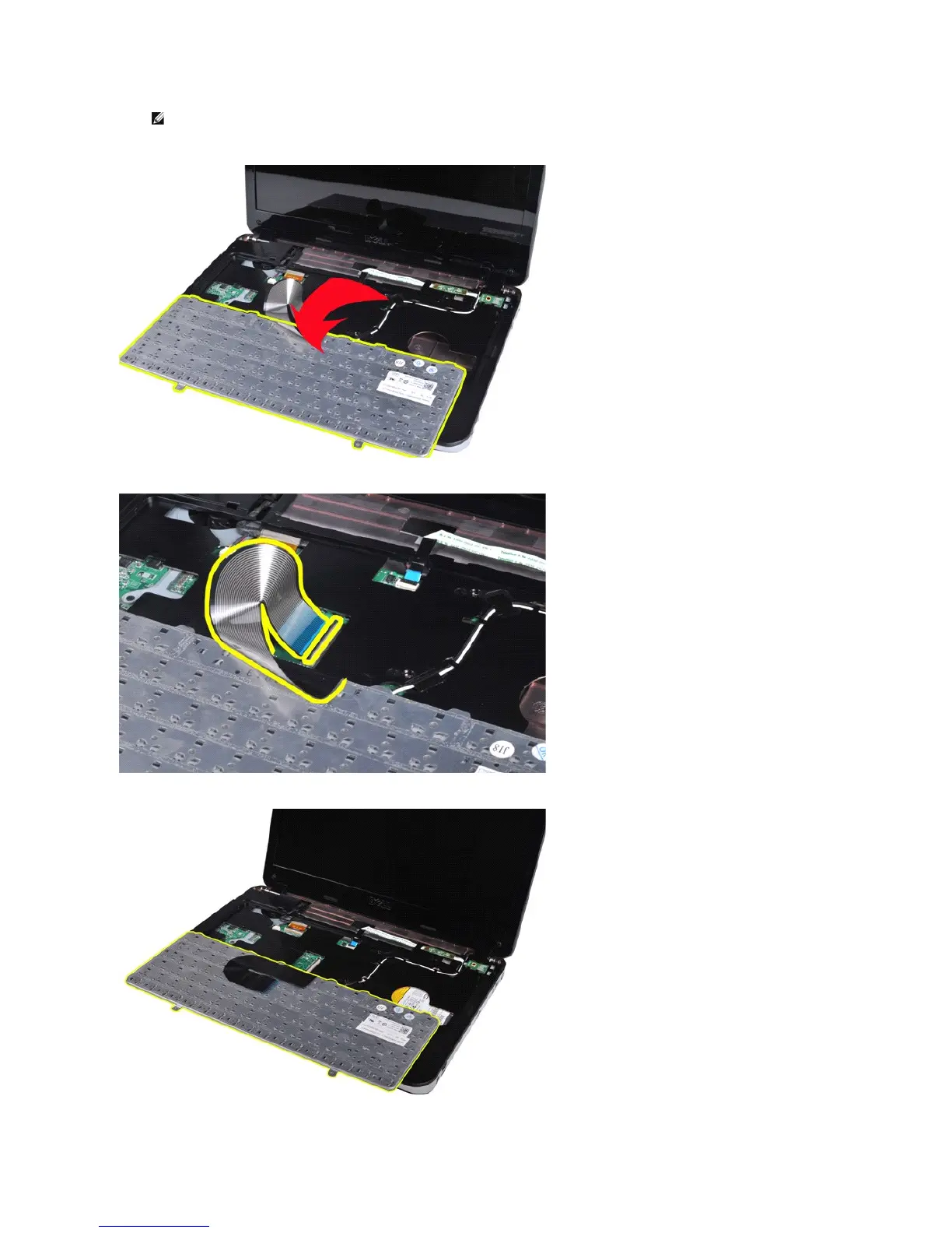 NOTE: Lift the keyboard carefully to ensure that you do not pull on the keyboard cable.