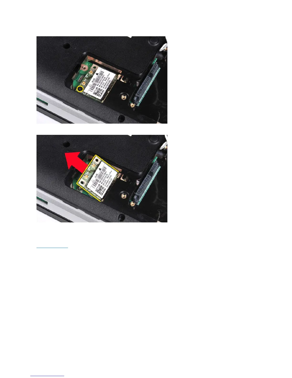 7. Slide the WLAN card out of the connector on the system board at a 45-degree angle.