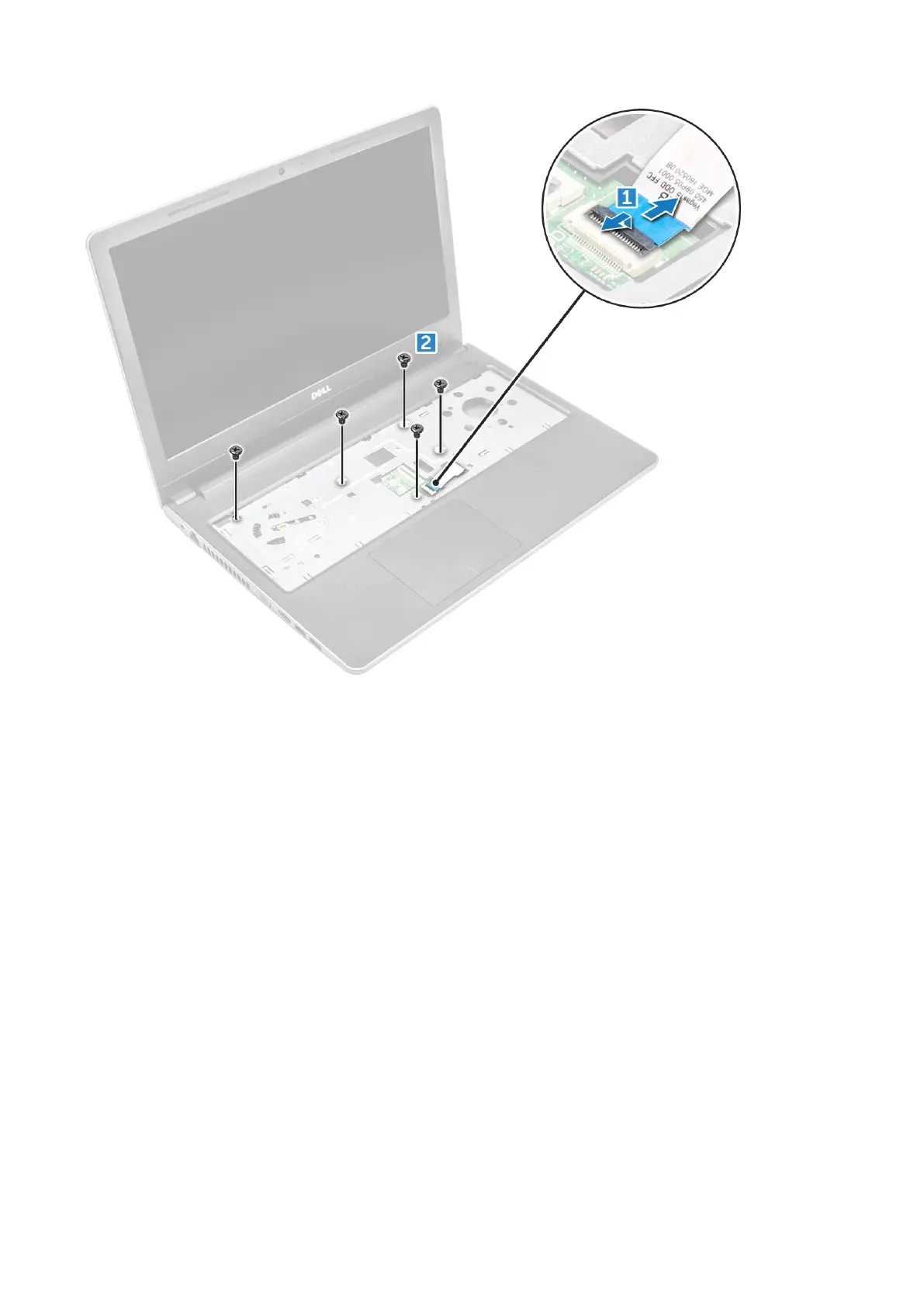 4. Flip the computer and remove the screws (3 screws - M2L2; 2 screws- M2L2; 8 screws - M2.5L8) that secure the base