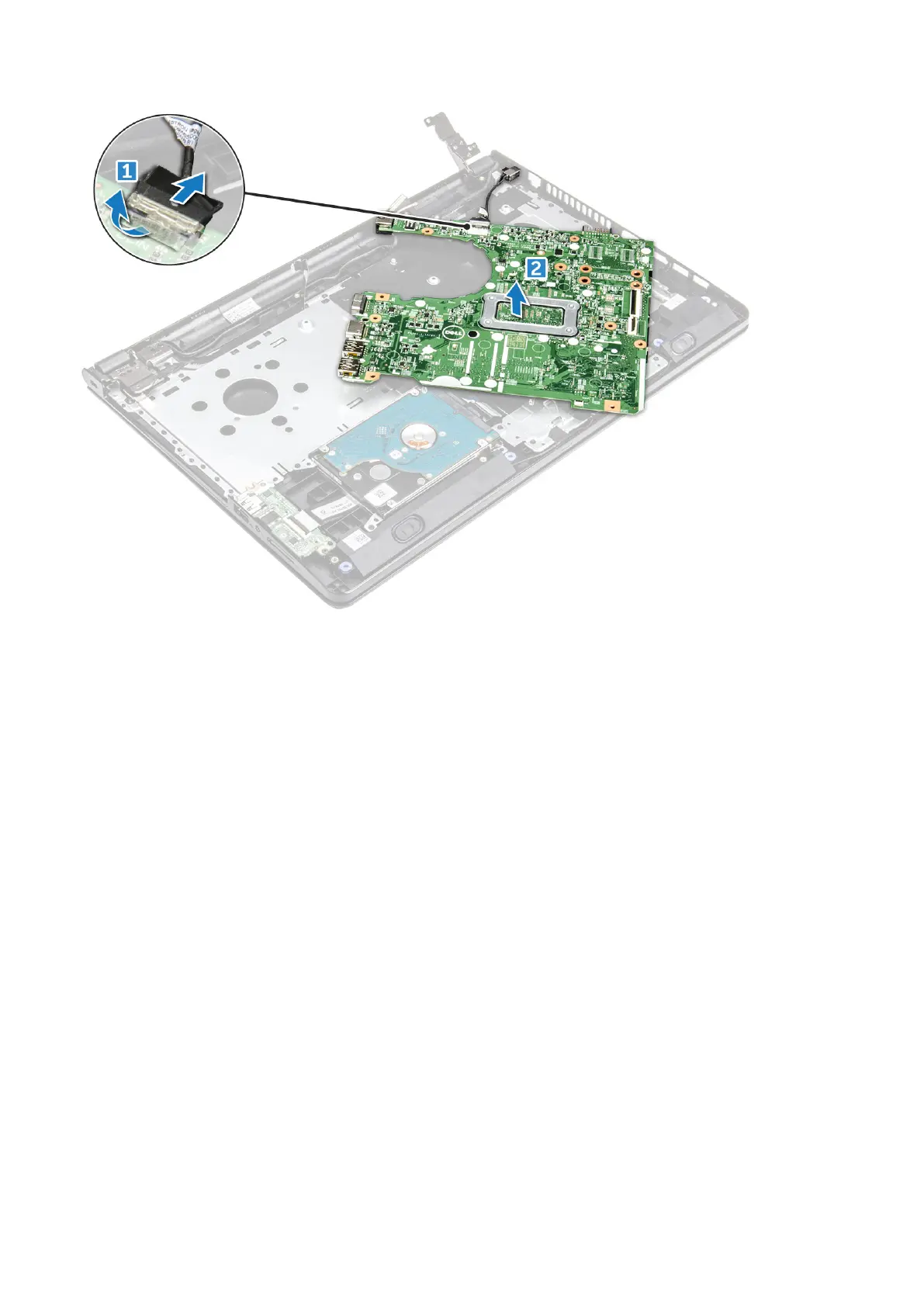 7. Connect the following cables to the system board.