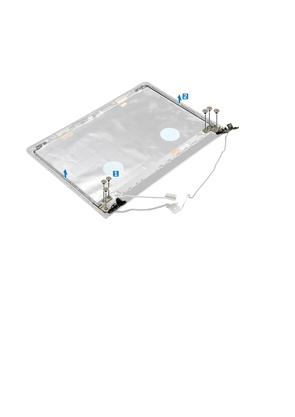 a. Remove the six M2.5L2.5 screws that secure the display hinges to the display assembly [1].