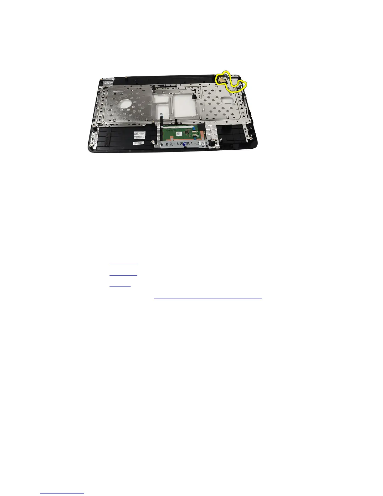 4. Flip the computer around and attach the power button board cable to the palm rest.