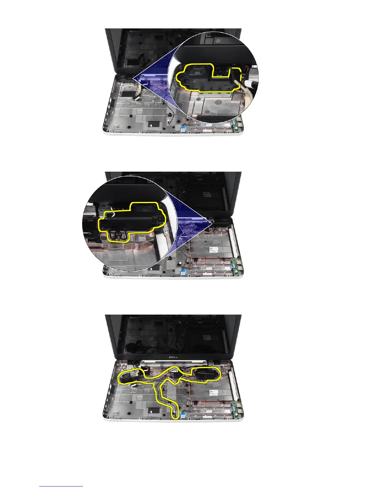15. Remove the speaker assembly and the speaker cable from the computer.