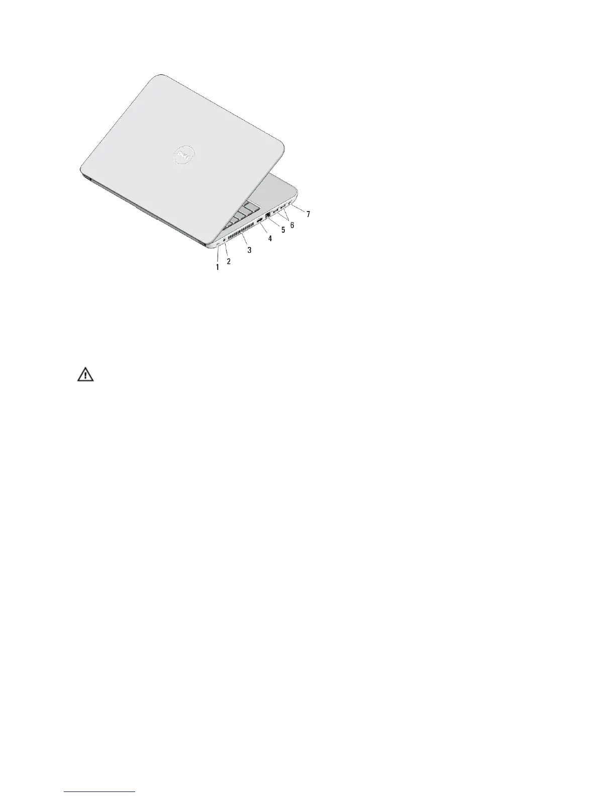 WARNING: Do not block, push objects into, or allow dust to accumulate in the air vents. Do not store your Dell