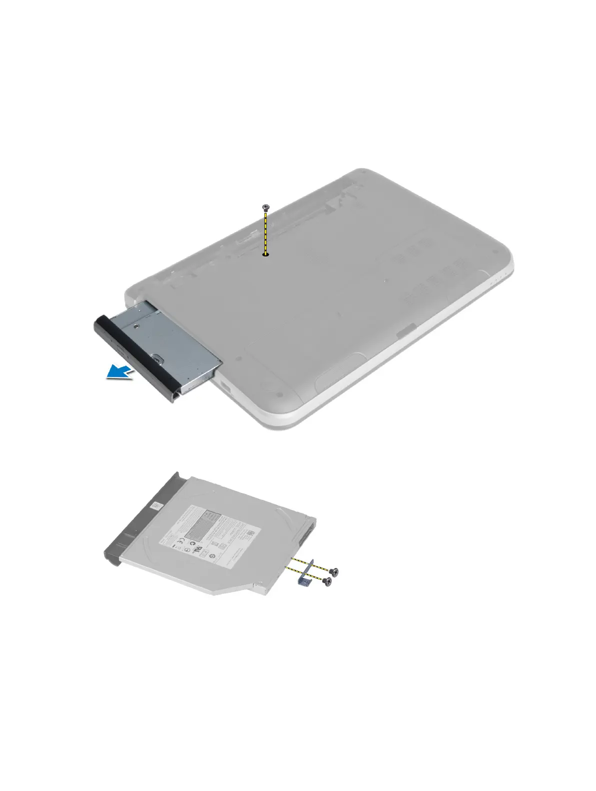 3. Remove the screw that secures the optical drive and slide it out of the drive bay.