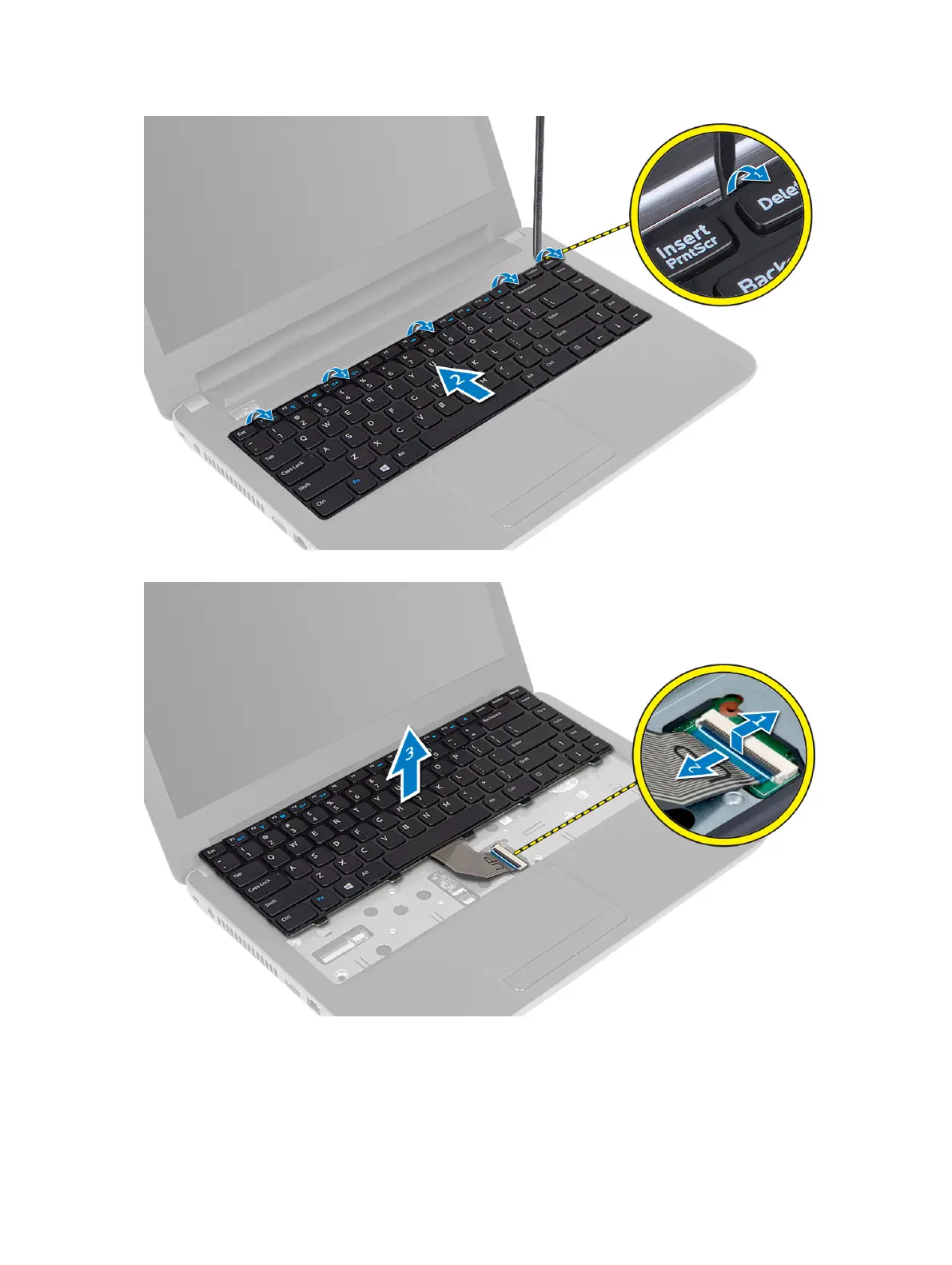 5. Disconnect the keyboard connector from the system board and lift it up to remove it from the computer.