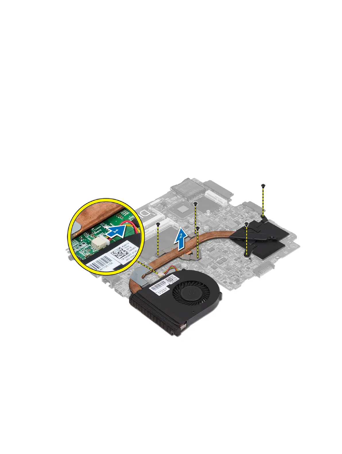 4. Disconnect fan cable remove the screws that secure the heatsink to the system board. Lift the heatsink from the