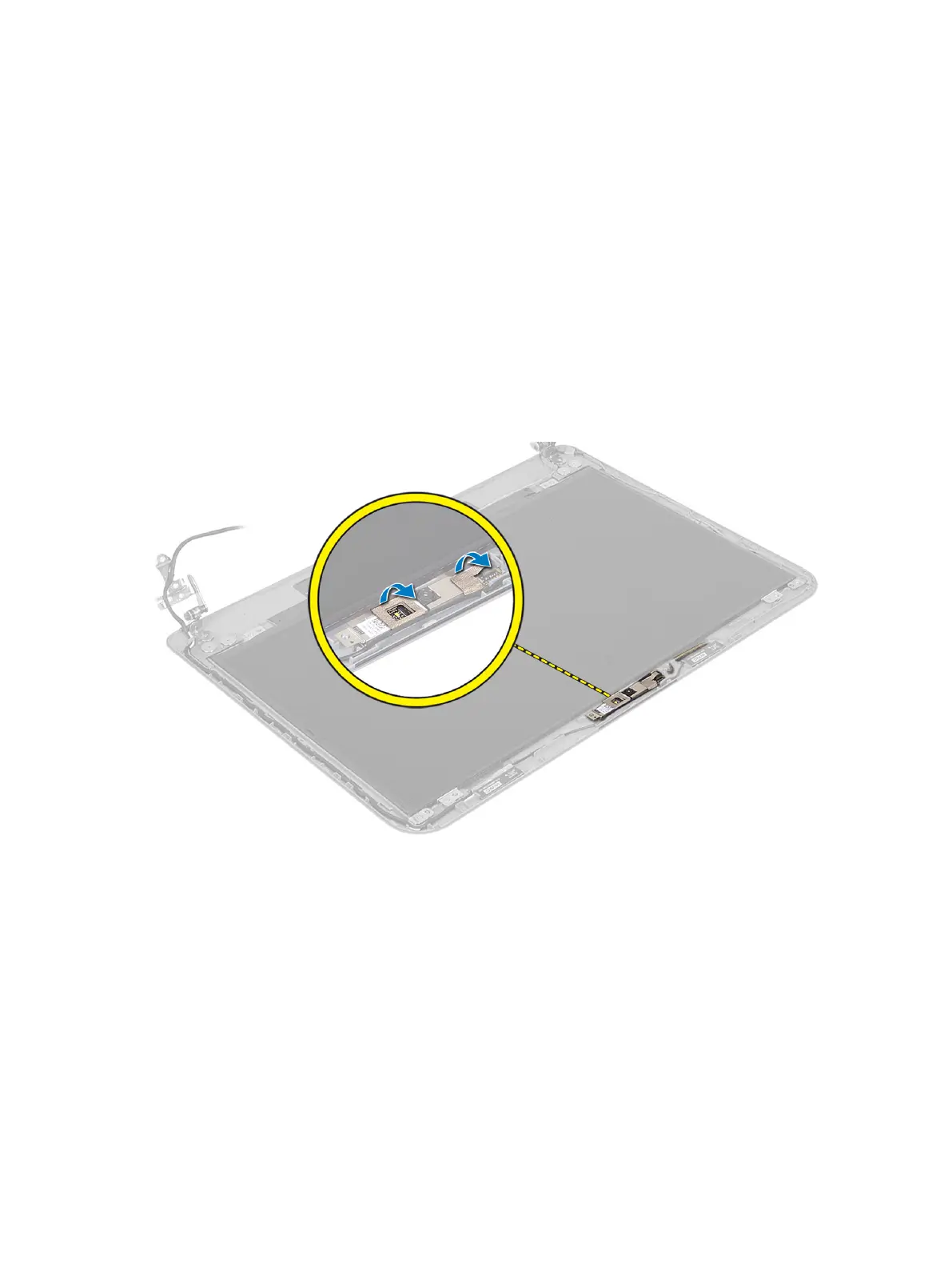 3. Disconnect the camera cable from the connector on the camera module and lift the camera off the display