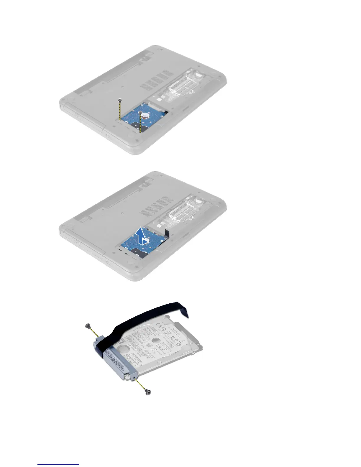 4. Slide the hard drive in the direction shown and lift the tab to remove it from the computer.