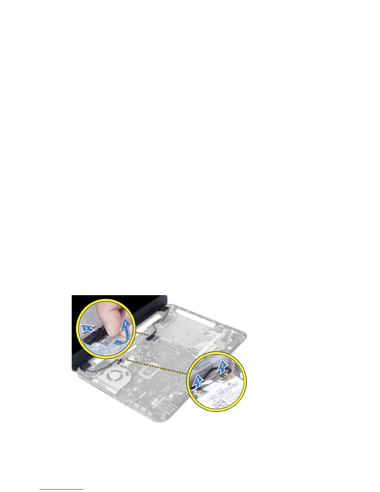 on the system board. Disconnect the wireless-mini card antennae from the connector on the system board.