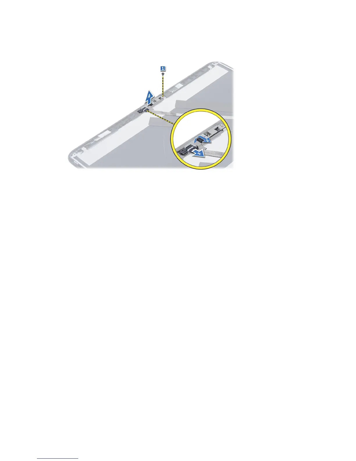 3. Remove the screw, peel the tape and disconnect the camera cable from the connector and remove the camera