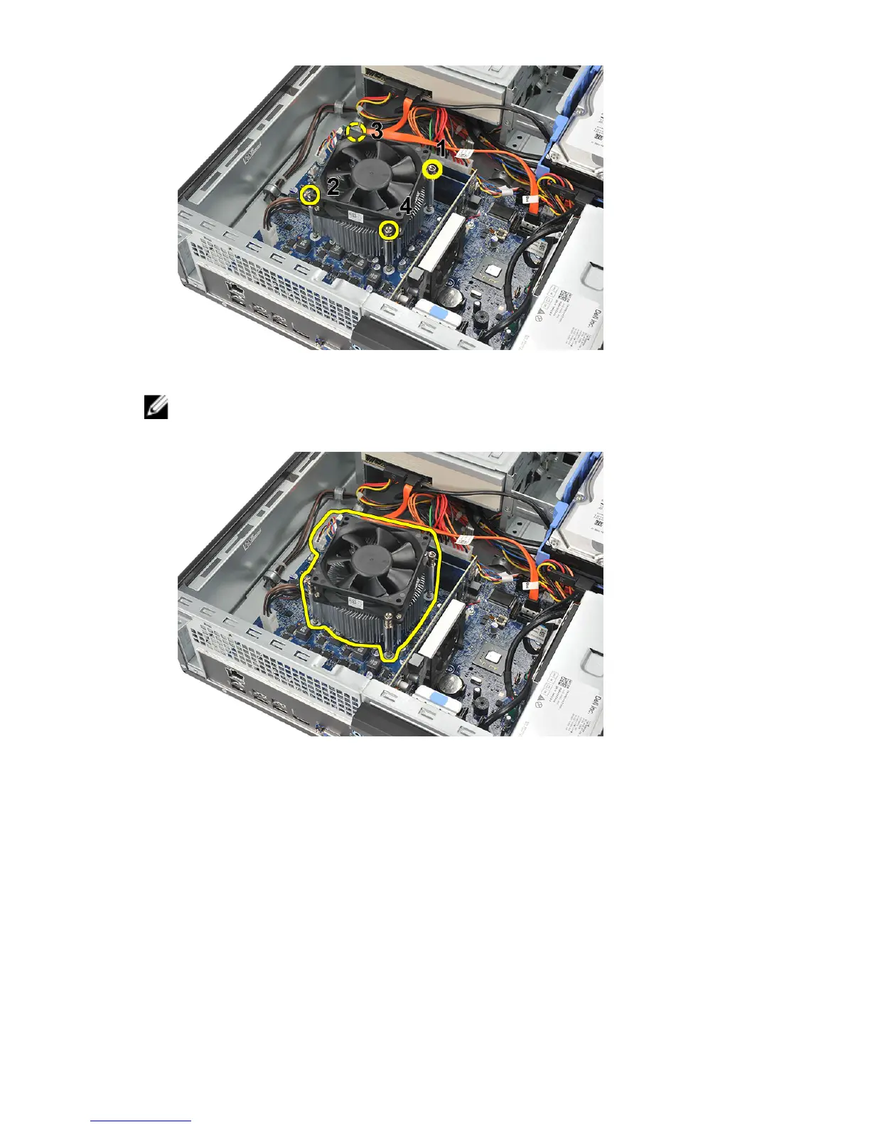 NOTE: Lay the assembly with the fan facing downward, and with the thermal grease