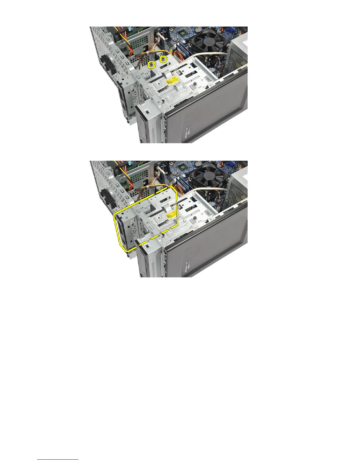cable along the inside of the computer.
