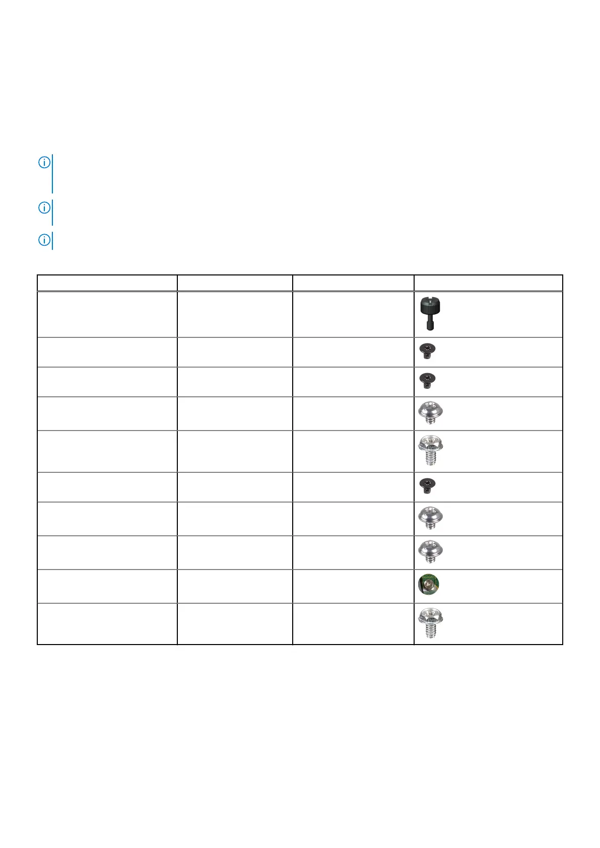 NOTE: When removing screws from a component, it is recommended to note the screw type, the quantity of screws, and
