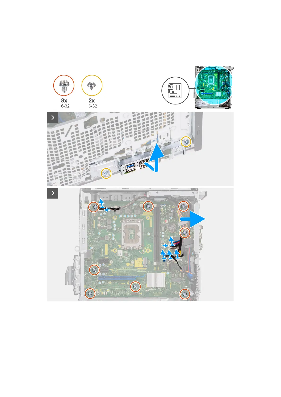 The following images indicate the location of the system board and provide a visual representation of the removal procedure.