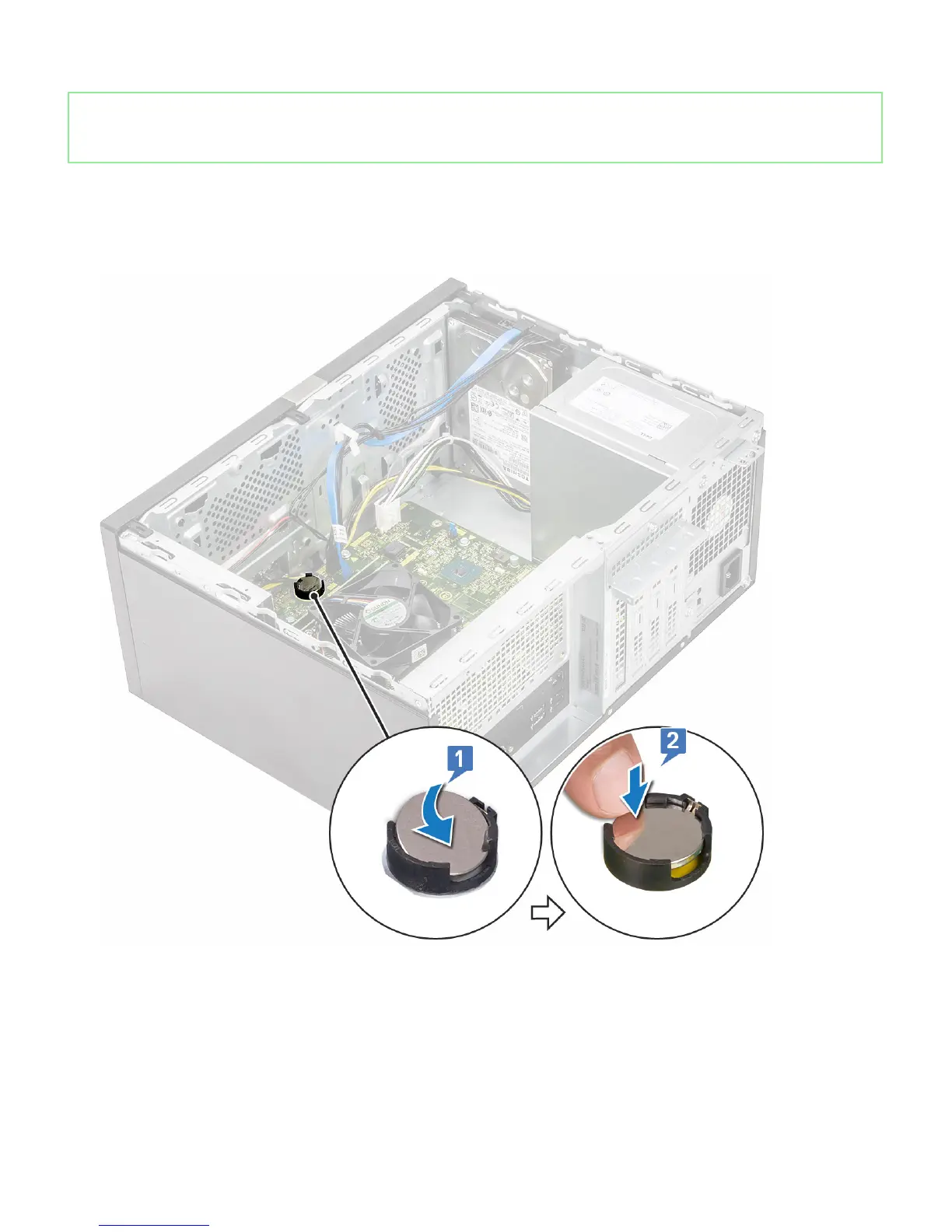 1 Place the coin cell battery in its slot on the system board.