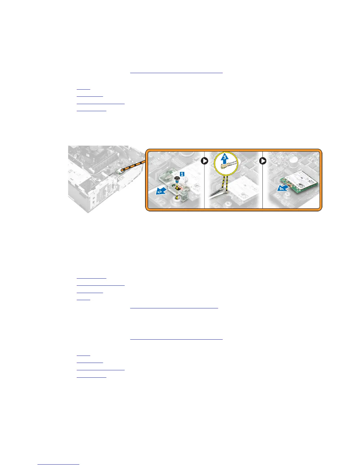 b. Disconnect the WLAN cables from the connectors on the WLAN card. [3]