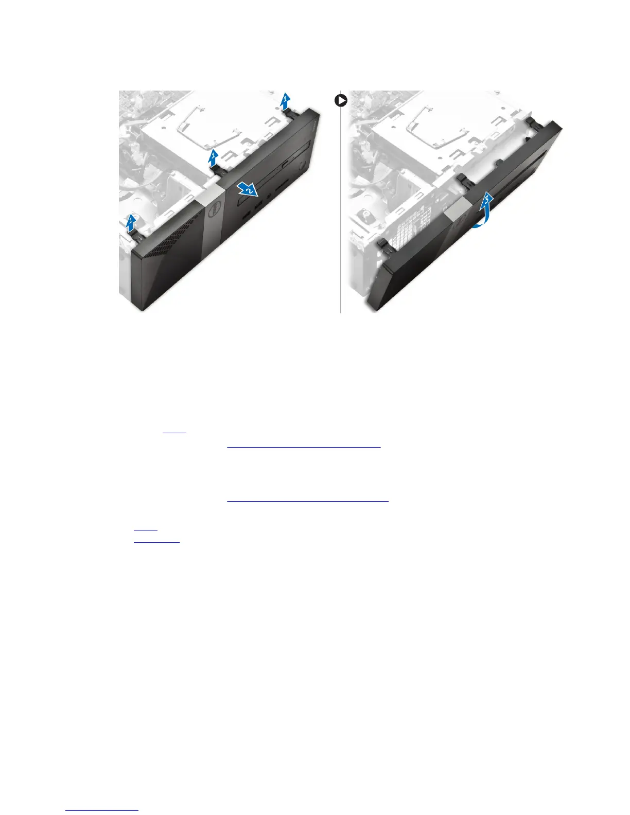 b. Lift up the front bezel to remove it from the computer [3].