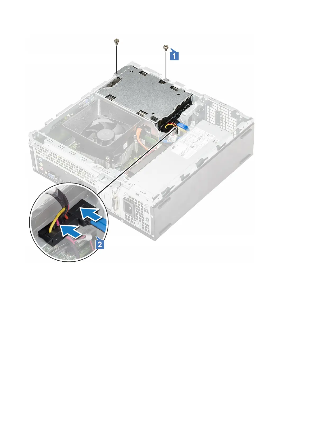 3. Follow the steps to release the drive cage: