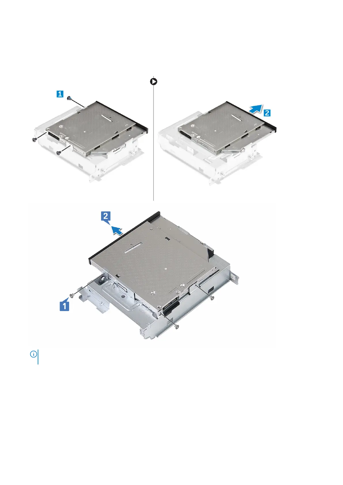 NOTE: Remove the optical-drive bracket only if you are replacing with a new optical drive. Otherwise, if optical drive