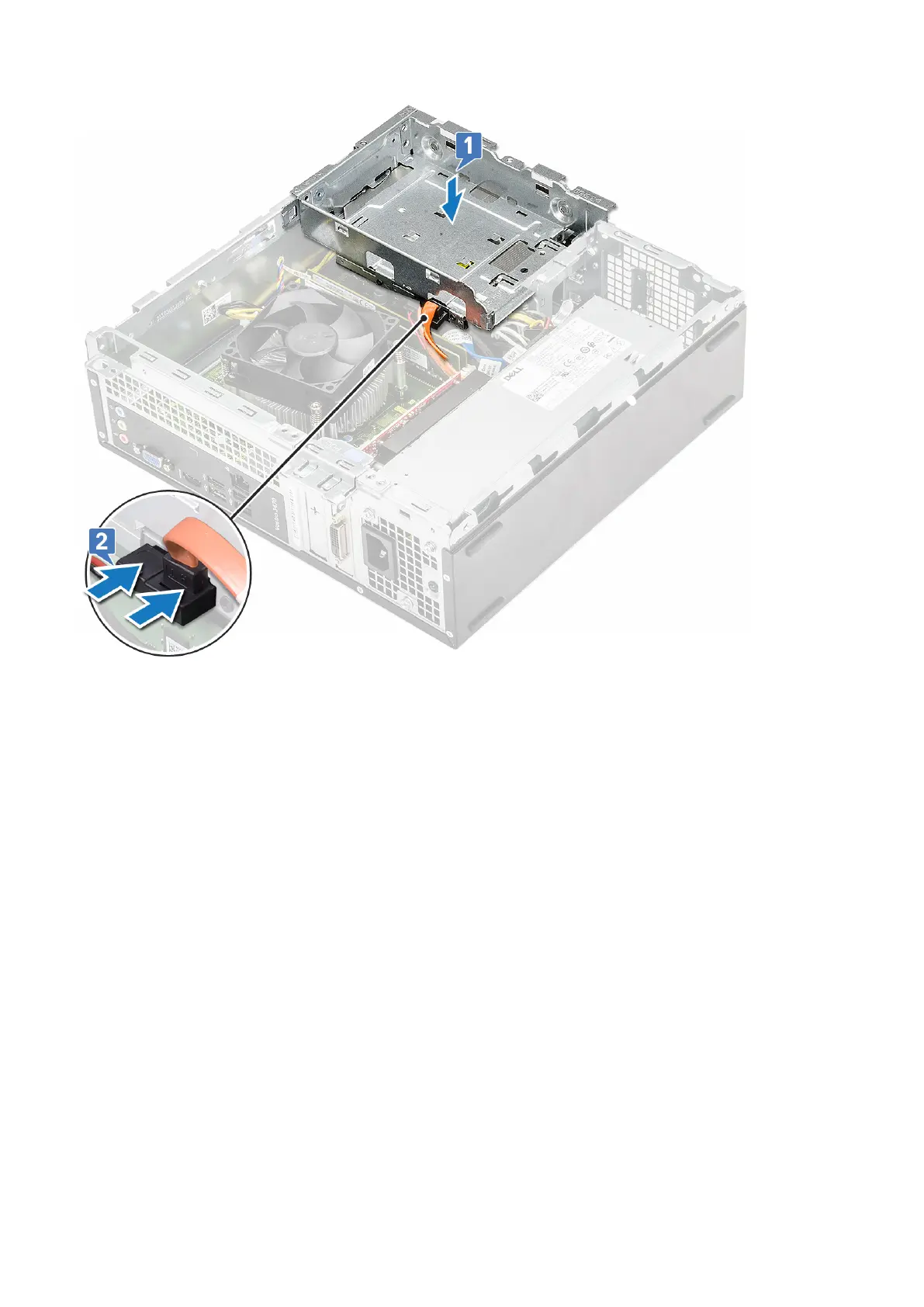 2. Insert the drive cage into the slot until it clicks into place [1].