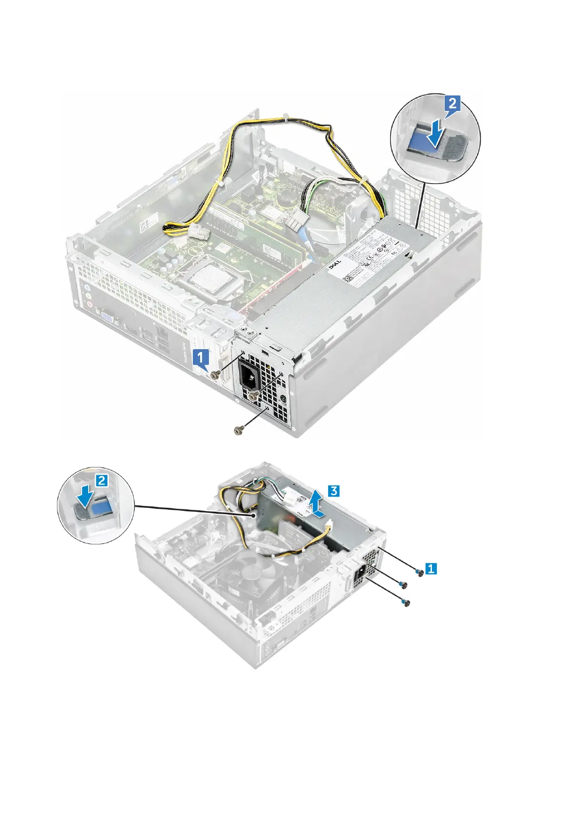 a. Remove the three 6-32xL6.35 screws that secure the PSU [1].