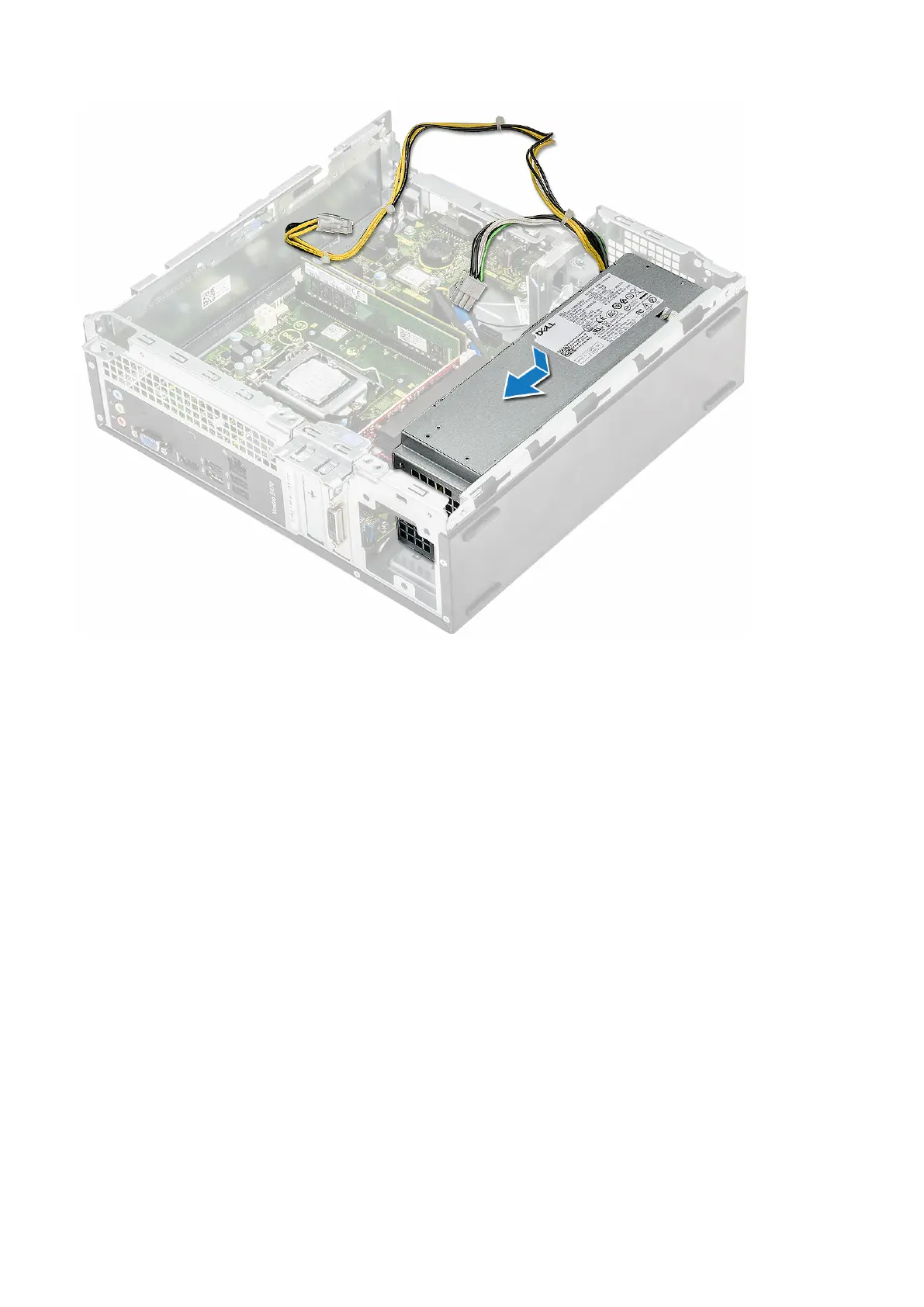 2. Replace the three 6-32xL6.35 screws to secure the power supply unit to the computer.