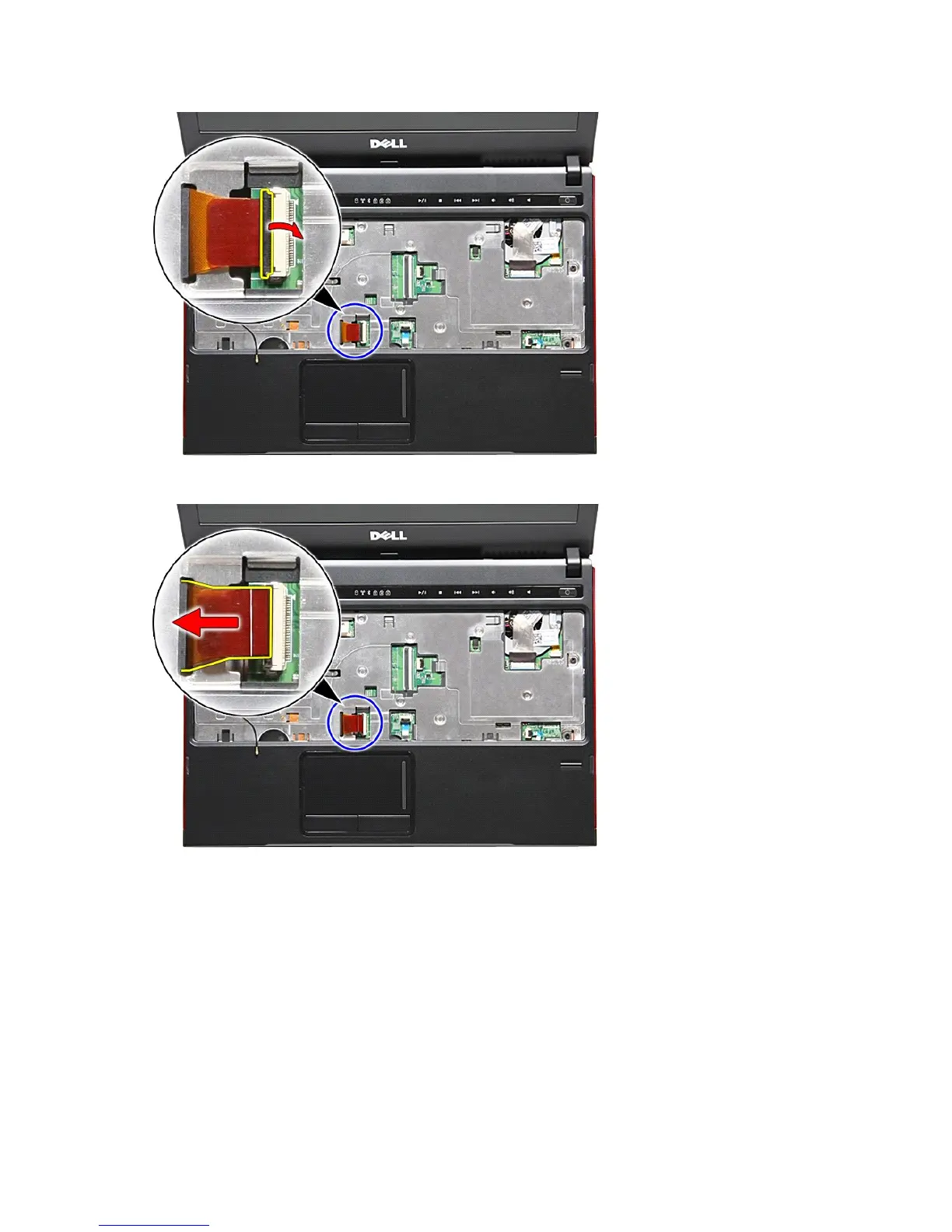 18. Open the clip that secures the touchpad data cable to the system board.