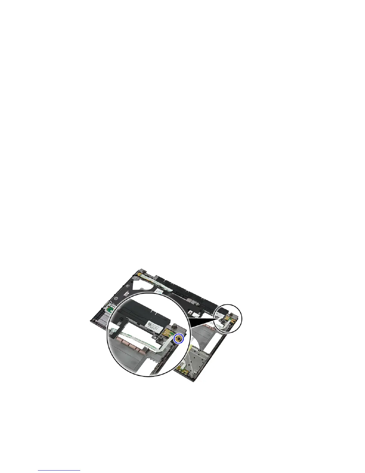 9. Remove the screw that secures the power-button board.