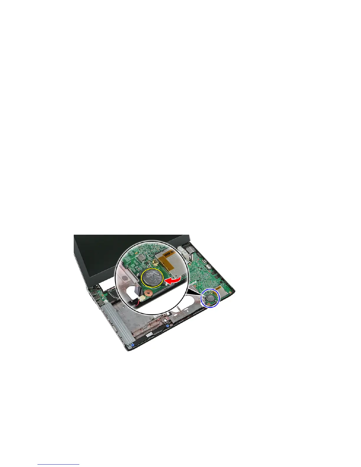 8. Pry the tabs that secure the coin-cell battery to the system board.
