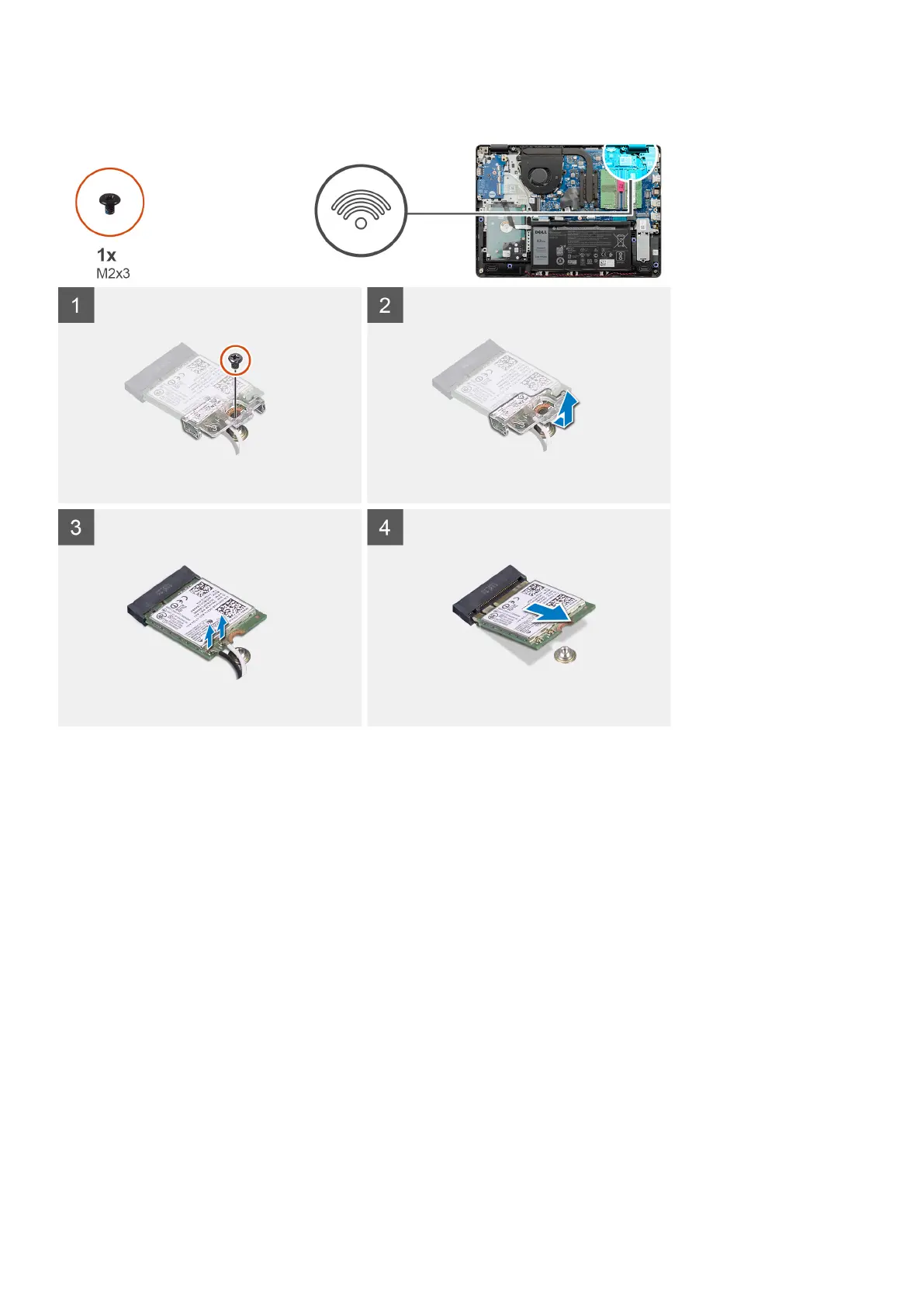1. Remove the single (M2x3) screw that secures the WLAN card bracket to the system board.