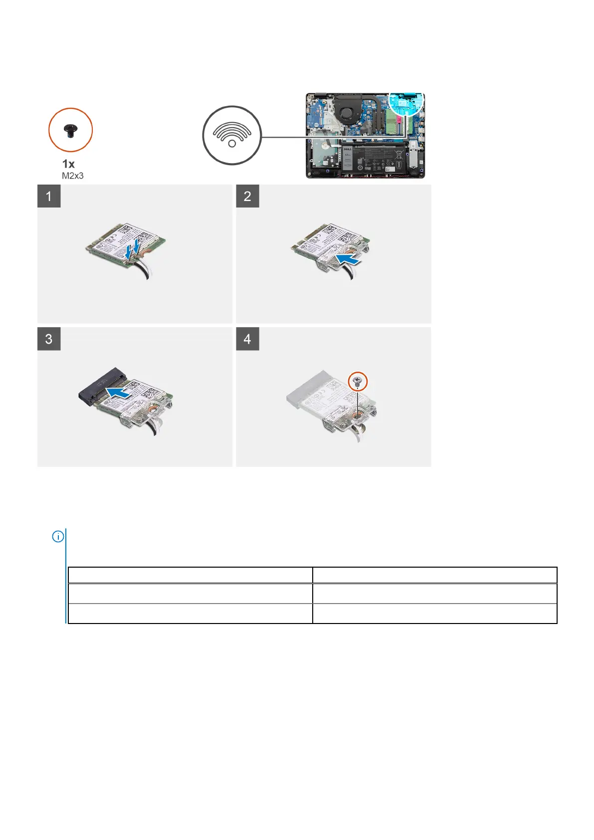 4. Replace the single (M2x3) screw to secure the WLAN bracket and the WLAN card to the palmrest.