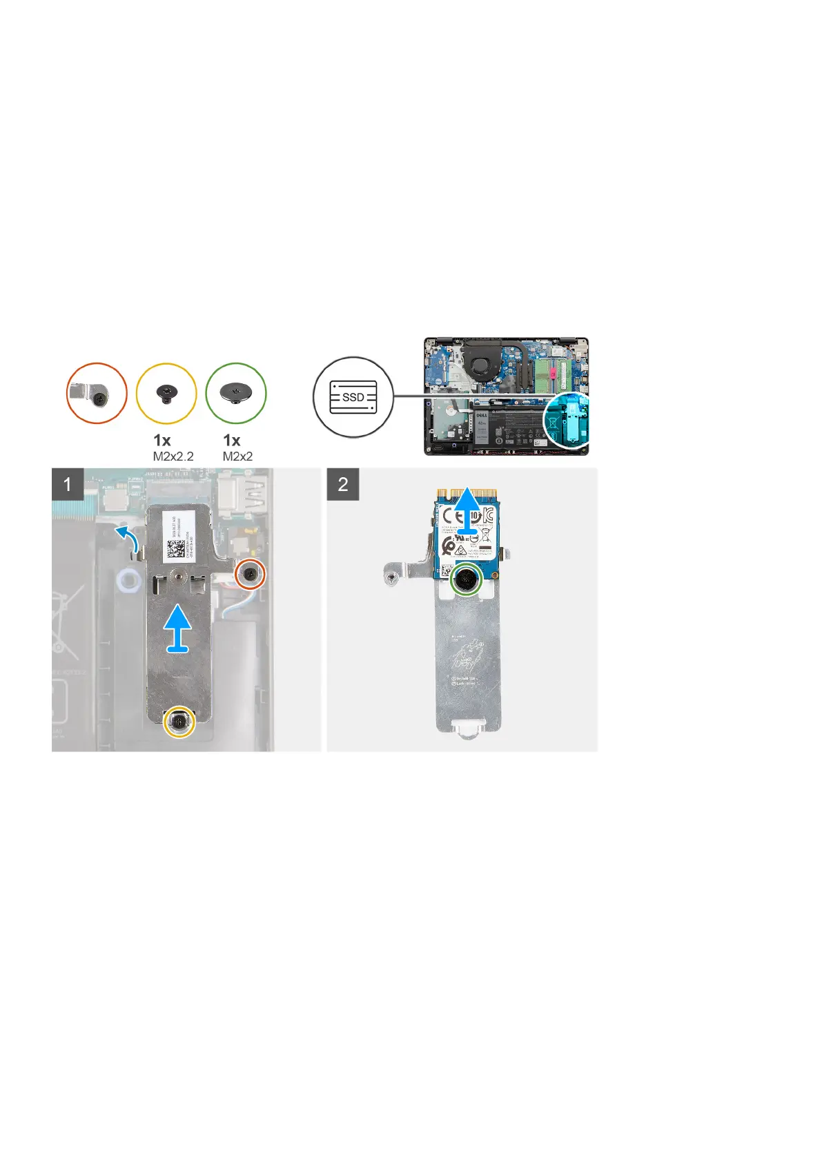 1. Remove the single (M2x2.2) screw and loosen the single captive screw, securing the SSD thermal plate to the palmrest, to