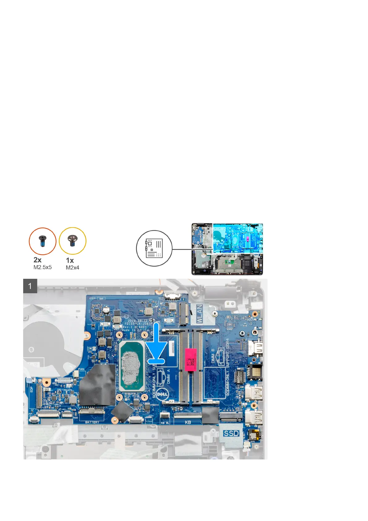 3. Remove the single (M2x4) screw that secures the system board to the palmrest.