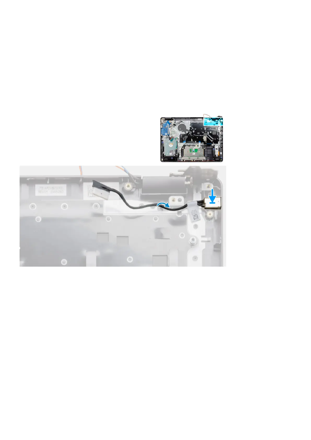 Place the power adapter port module into the slot provided on the palmrest.