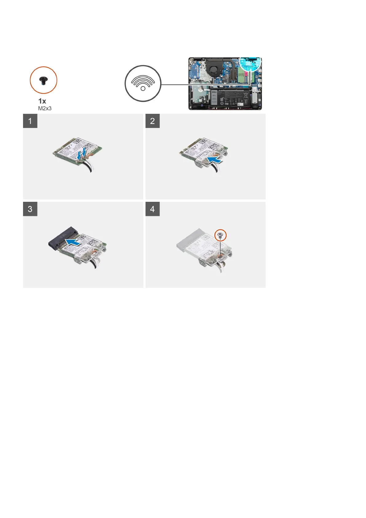 4. Replace the single (M2x3) screw to secure the WLAN bracket and the WLAN card to the palmrest.