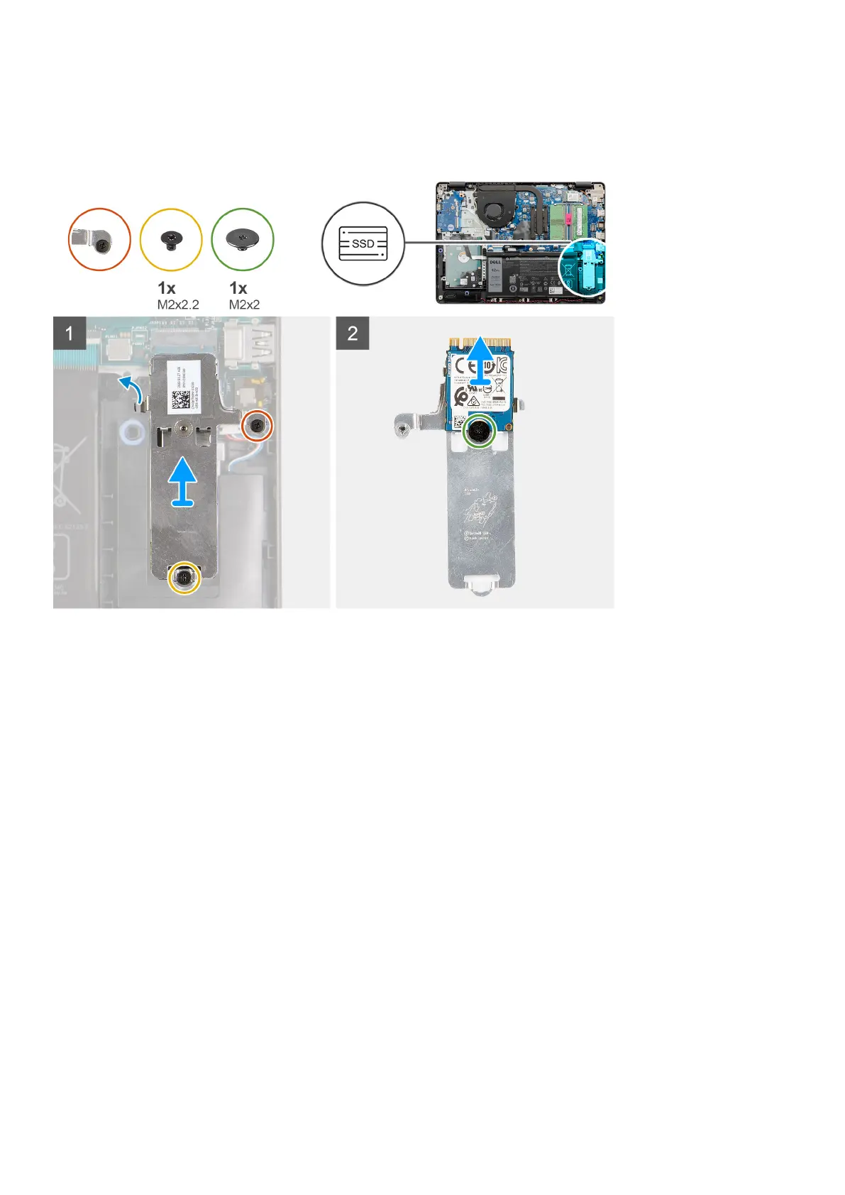 1. Remove the single (M2x2.2) screw and loosen the single captive screw, securing the SSD thermal plate to the palmrest, to