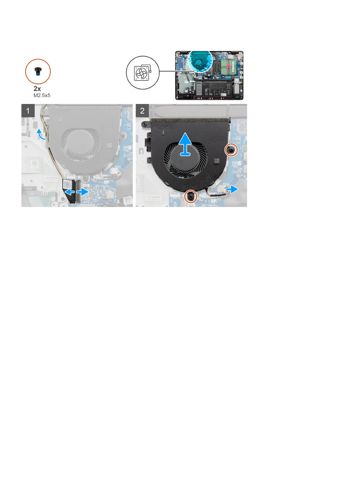 2. Remove the two screws (M2.5x5) that secures the fan to the palmrest.