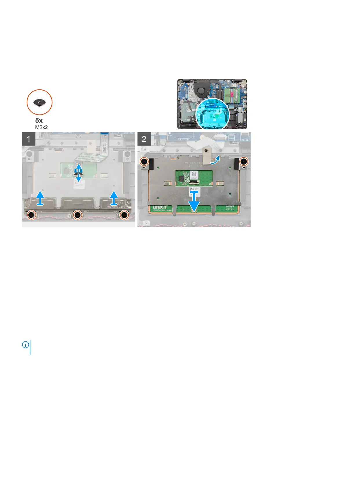 5. Remove the two (M2x2) screws securing the touchpad module in place.
