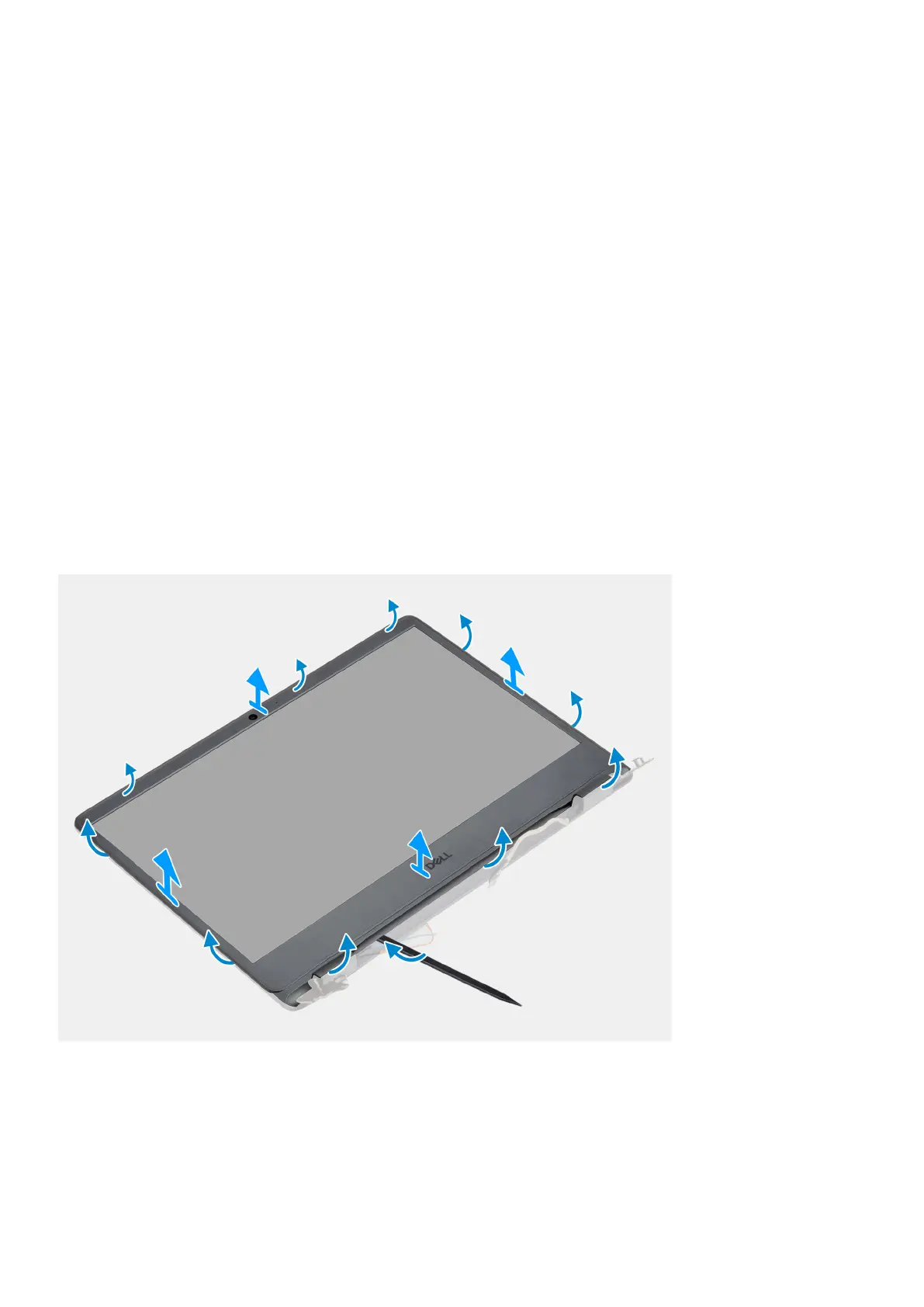 1. Pry open the display bezel from the inner edge at the left and right sides of the display assembly.