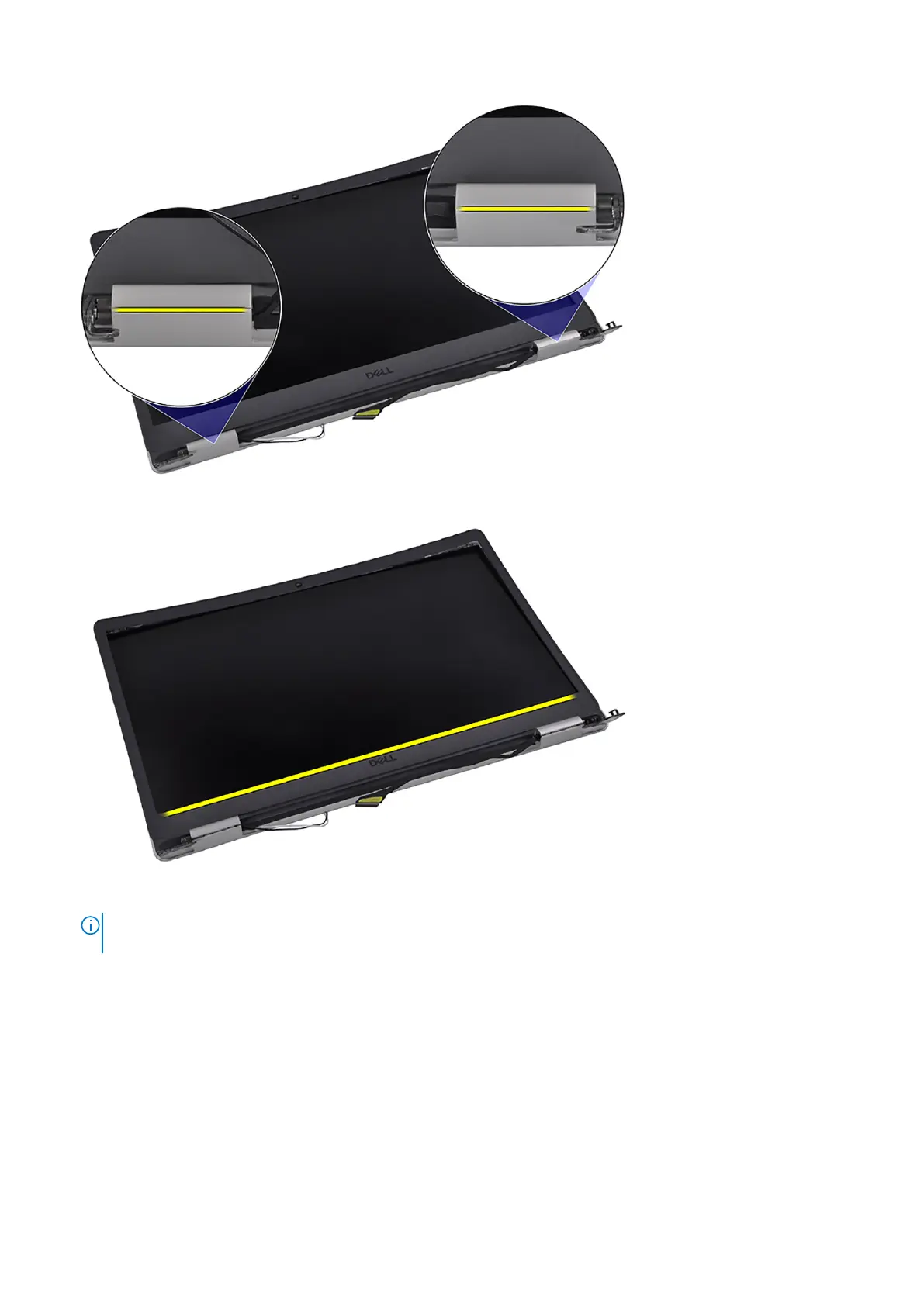 CAUTION: DO NOT use a scribe or any other objects to pry up the display bezel in the manners shown in the