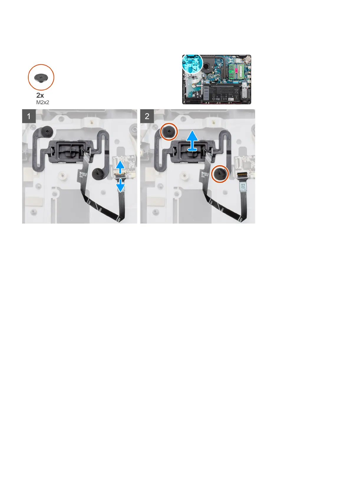 1. Remove the two (M2x2) screws securing the power button to the palmrest.